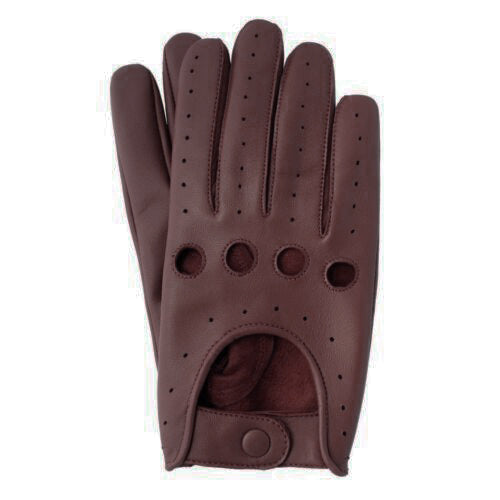 Apex Wear Leather Driving Gloves 100% Real Genuine Lambskin Knuckle Holes Dark Brown
